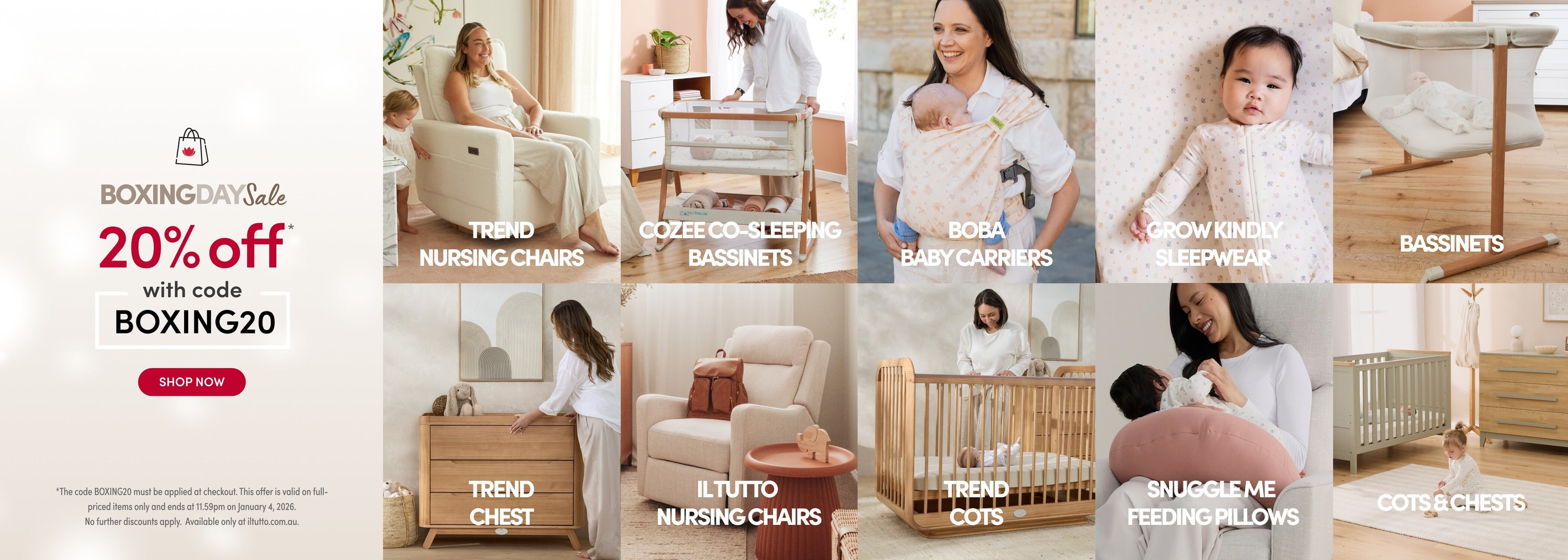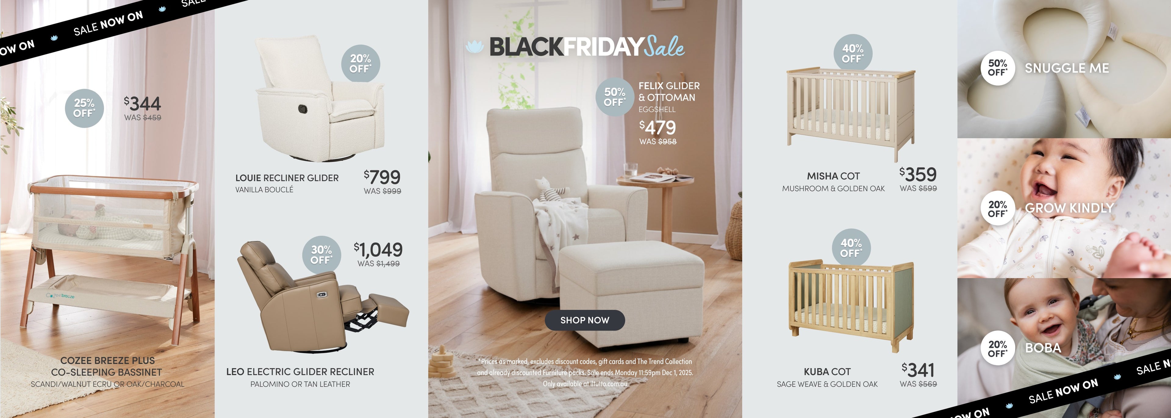 Our award-winning collection includes premium nursery chairs, cots, chests, and bassinets designed for comfort, safety, and style. The exclusive Trend Collection features the best-selling Frankie and Louie chairs in teddy-fleece and corduroy, alongside premium New Zealand timber cots and chests. We also offer trusted global baby brands including Boba carriers, CoZee® bedside co-sleepers, Snuggle Me Organic support pillows, and sustainable sleepwear from Grow Kindly. Discover the best in nursery furniture and essentials — loved by Australian parents since 2007.