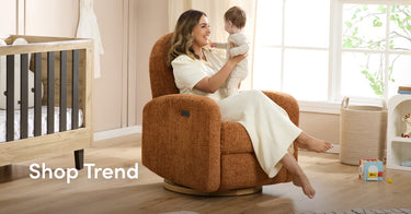 The 360-degree swivel glider base (180 degrees for the electric version) has a gentle and smooth gliding motion, ideal for rocking your baby to sleep. Our exclusive, premium fabrics are STANDARD 100 by OEKO-TEX® certified, meaning they don’t contain harmful substances or toxic chemicals.