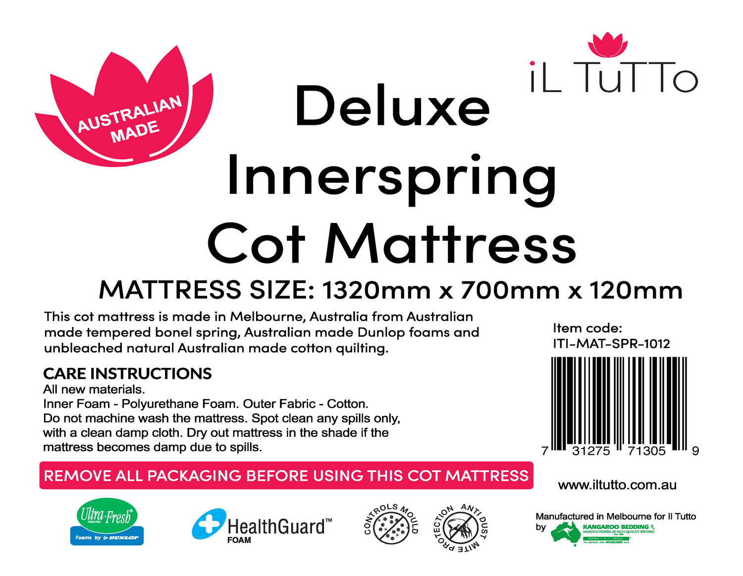 Deluxe Innerspring Cot Mattress: 1320x700x120mm.