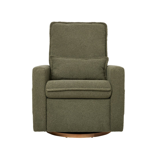 Escape into a dreamy nursery setting with our Frankie Teddy Nursery Chair in the new stylish olive fleece. This IL Tutto nursery chair is designed with a stylish, deep olive colour and wooden base which enables it to bring a modern sophistication to your dream nursery. Revel in the practicality of a 180-degree swivel, electric recline with USB A and C charging points, and a gentle glide for serene soothing moments. The ergonomic design caters to the feeding parents’ body. Frankie also features a tall backrest and an included lumbar cushion.