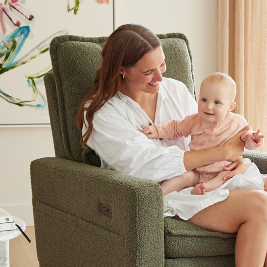 We understand when you're in your chair soothing bubs, the last thing you need is a noisy chair to wake up your newborn. For this reason, we designed our Frankie chair to be very quiet. The noise is hardly noticeable and won't interrupt your time with your little one.