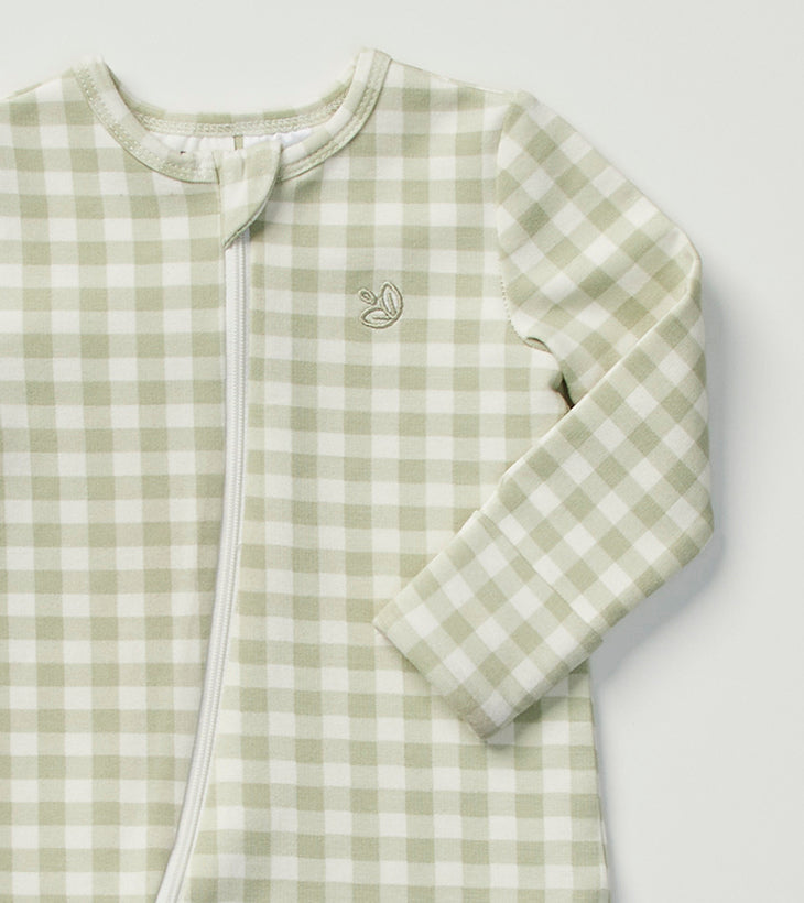 Light Zippee Baby Romper in Gumleaf Gingham