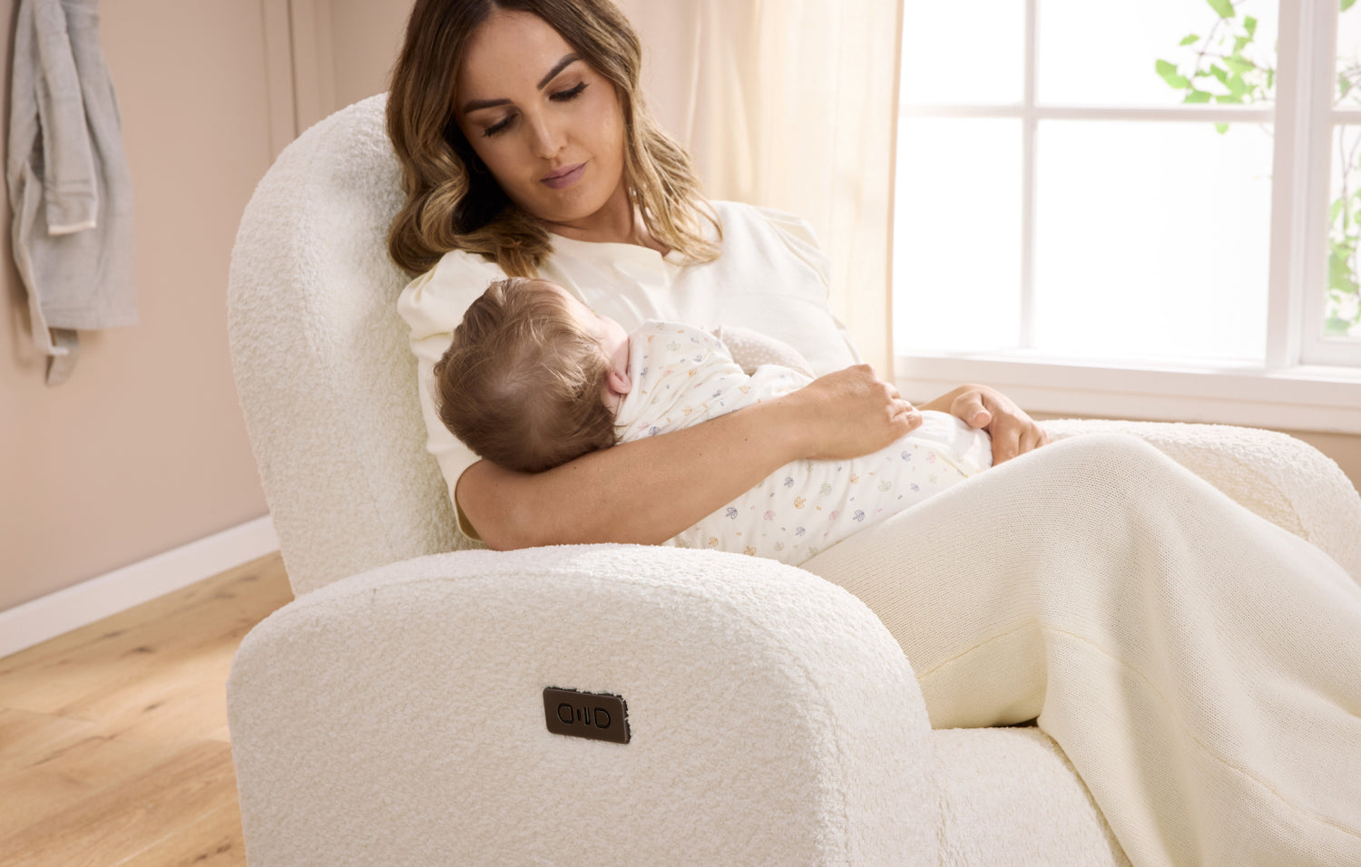 The Maya Electric Recliner is thoughtfully designed to offer optimal support for parents during those long, demanding hours of feeding and comforting. With its ergonomic design and adjustable features, it helps relieve pressure on the back, neck, and legs, ensuring you can relax and bond with your baby in total comfort. The chair's gentle reclining motion and soft, supportive cushioning allow for effortless transitions between feeding, resting, and playtime, making it the perfect companion for new parents looking for a supportive and restorative seating option.