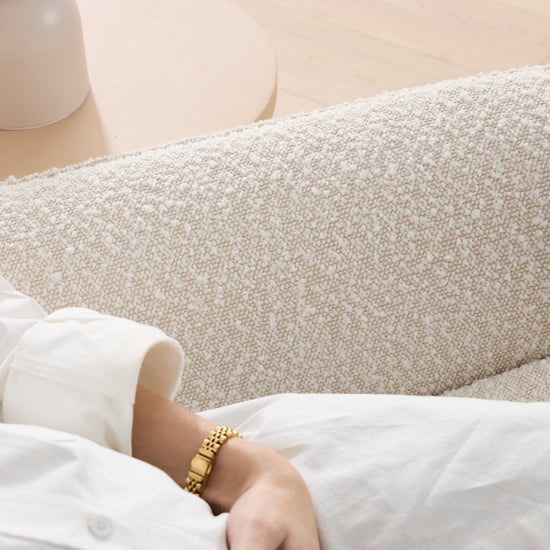 To ensure the longevity of Louie's fleece fabric, it's essential to follow a few care guidelines. Regularly vacuum or brush the surface to remove dust and debris, preventing them from settling into the chairs fibers. In case of spills or stains, promptly blot the affected area with a clean, damp cloth and a mild detergent. Avoid using harsh chemicals or abrasive cleaners, as they can damage the fabric. We recommend our Fabric Care Kit. To maintain the softness and texture, consider rotating or flipping the cushions periodically. Additionally, keep the chair away from direct sunlight to prevent fading.