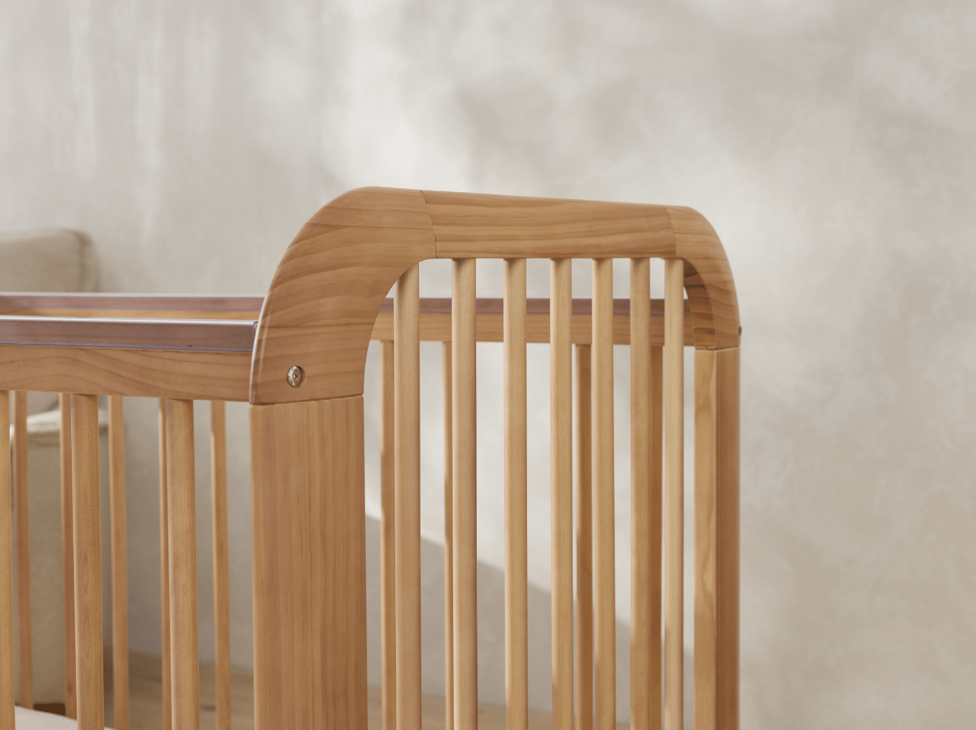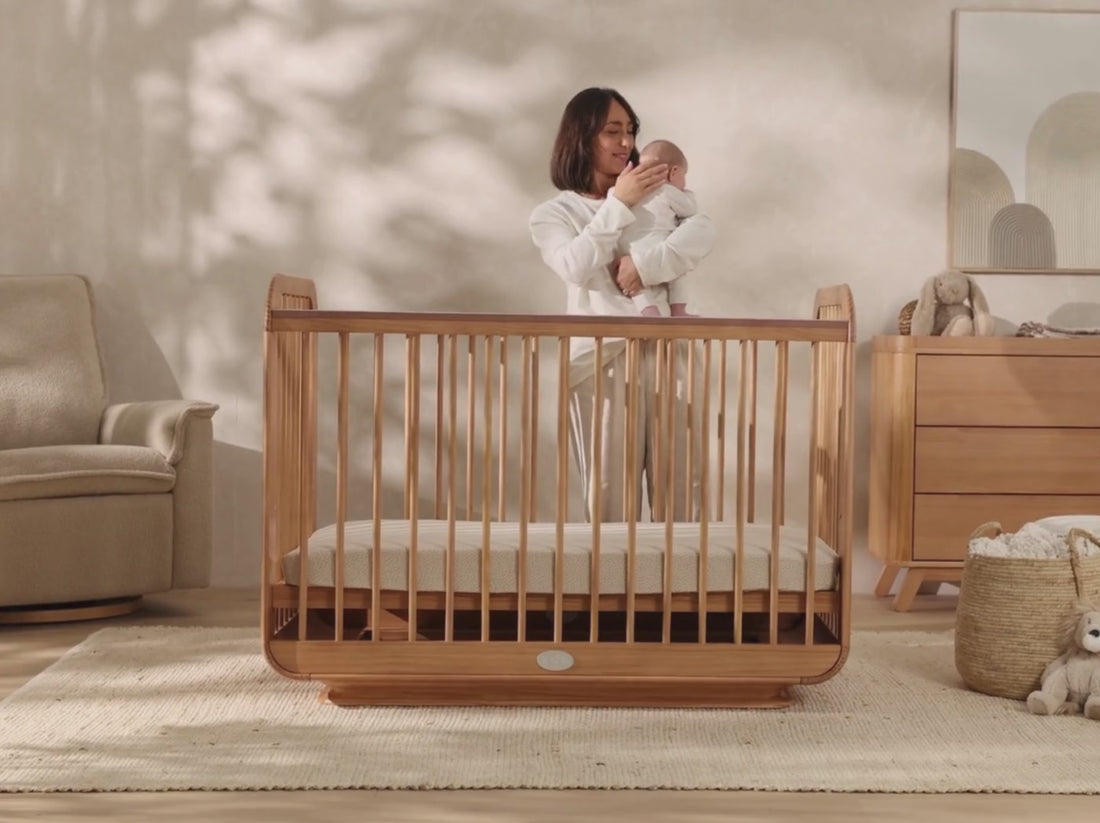 The Ollie Cot is where timeless nursery charm meets thoughtful modern design. With its soft timber tones, subtle detailing, and gently curved headboard, Ollie brings a warm, minimalist touch to any nursery. Designed to grow with your baby, it offers both beauty and functionality from day one through toddlerhood.