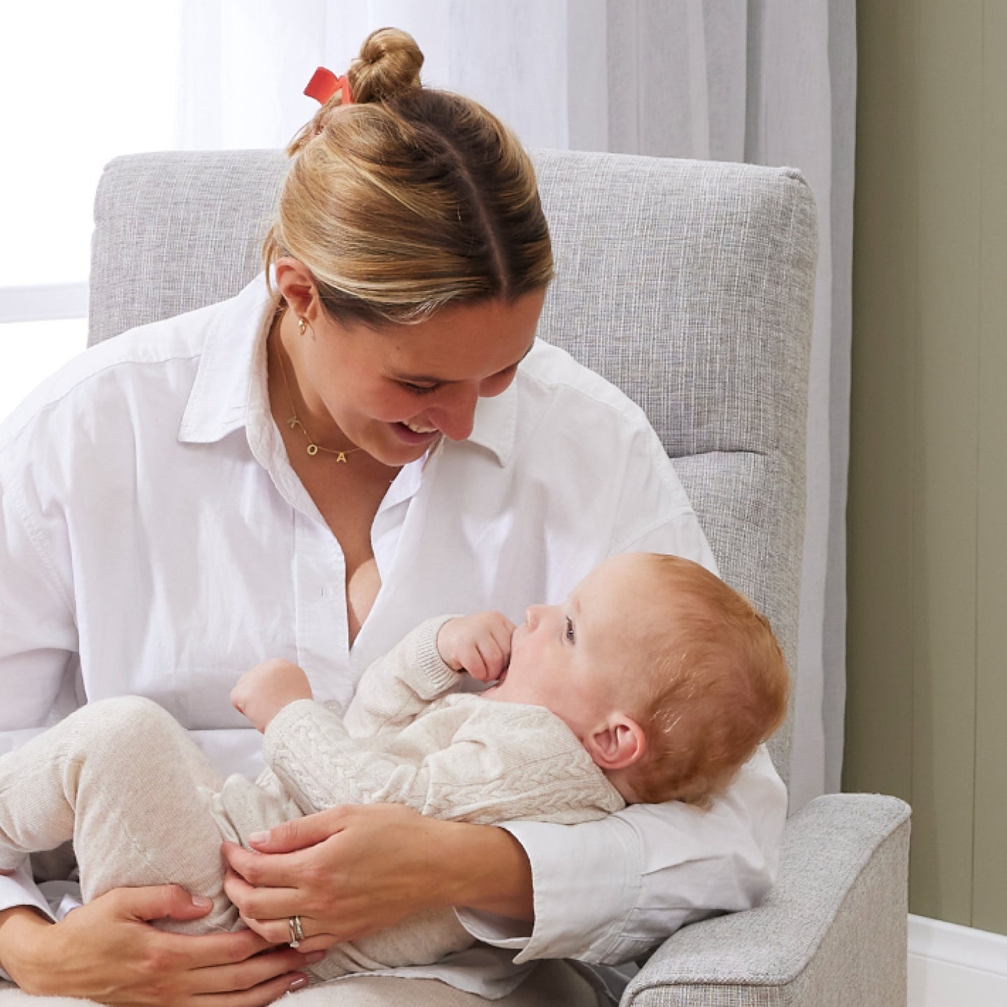 Meet Paige! A glider recliner nursing chair designed to complement a home of clean lines and a minimalist style for ease, comfort and support while nursing your baby. The Paige nursery recliner chair provides so much gliding comfort... more